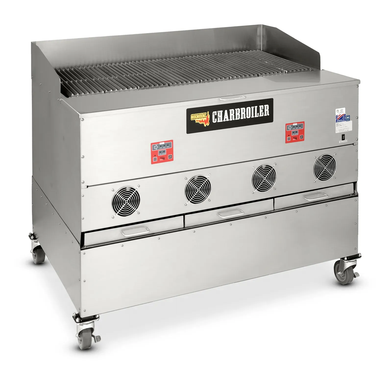 Stay ahead in the ever-evolving world of cooking with the Cookshack CB048 Charbroiler. Designed for commercial restaurant use, this wood-burning charbroiler is a game-changer in the kitchen. With its double-walled stainless steel construction, it ensures durability and longevity, making it a reliable investment for any establishment. The CB048 features eight heavy-duty cast iron grates, providing a generous 960 sq. in. cooking area to handle high-volume cooking. Its temperature control ranges from 250°F to 700°F, allowing for precise cooking and searing. Equipped with two digital controllers and four firepots, this charbroiler ensures consistent heat distribution and even cooking. The 80 lbs. hopper and three drip trays make it convenient to use, while the NSF, cETLus, and cWHus certifications guarantee its safety and compliance with industry standards. Elevate your restaurant's grilling game with the Cookshack CB048 Charbroiler.