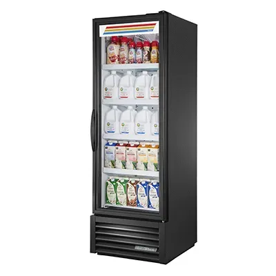 Achieve culinary excellence with the True Manufacturing FLM-27~TSL01 Refrigerator Merchandiser. This one-section, full-length refrigerated merchandiser is designed to meet the needs of commercial restaurants. With its four shelves and double pane thermal insulated glass swing door, this merchandiser provides ample space to showcase your culinary creations while keeping them at the perfect temperature. The LED interior lights illuminate the interior, making it easy for customers to see the delicious options available. The powder-coated exterior and white interior with a stainless steel floor not only give this merchandiser a sleek and professional look but also make it easy to clean and maintain. Made in the USA and equipped with R290 Hydrocarbon refrigerant, this merchandiser is not only reliable but also environmentally friendly. Trust True Manufacturing to deliver a high-quality refrigeration solution that will enhance your restaurant's efficiency and appeal.