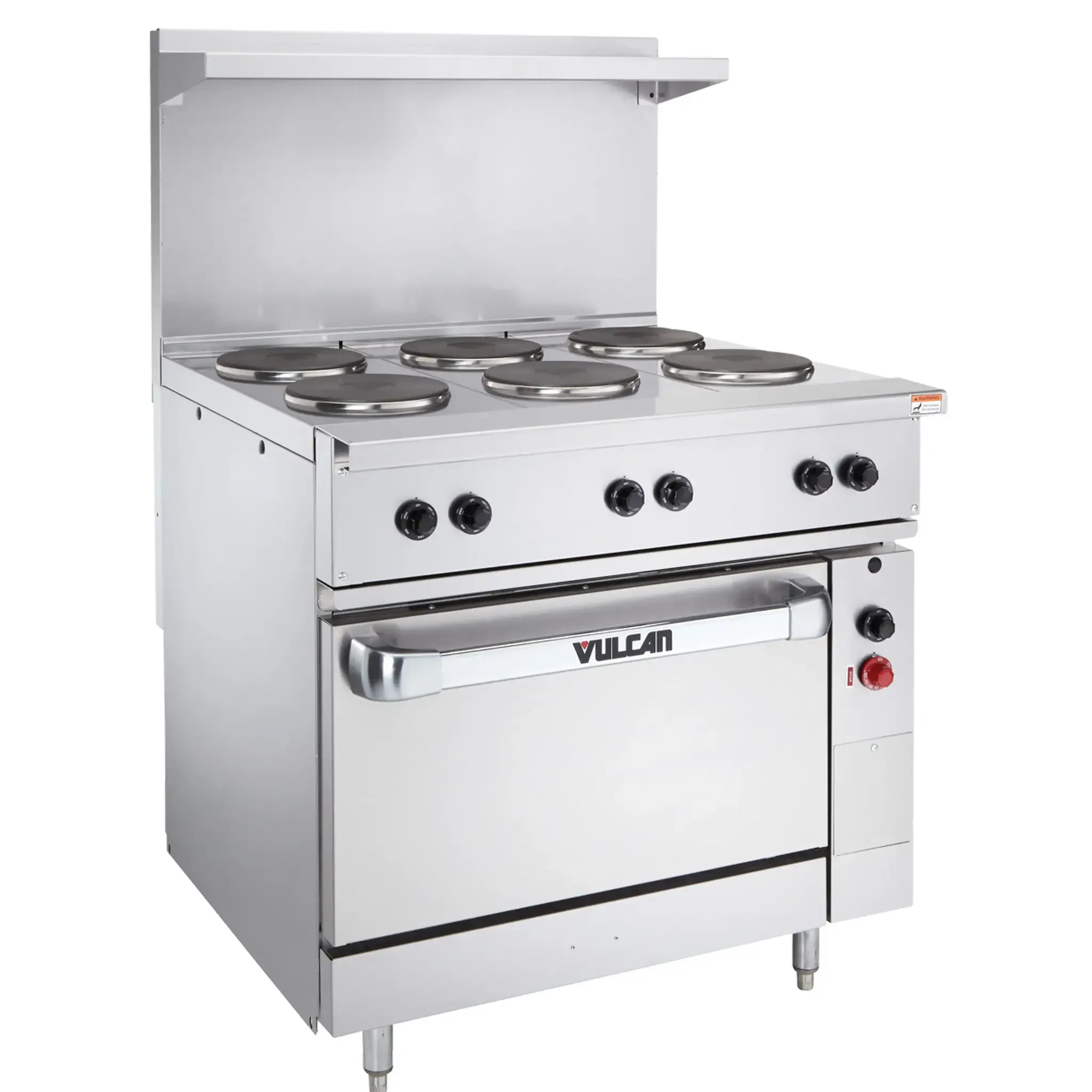 Cook with precision using the Vulcan EV36S-6FP240 Range, a top-of-the-line electric restaurant range designed to meet the demands of a busy commercial kitchen. With its six 2.0 kW French hotplates and infinite controls, this range allows chefs to easily adjust heat levels for precise cooking. The standard oversized oven, complete with a rack, provides ample space for baking and roasting. The stainless steel front, sides, single-deck high shelf, and 6" legs ensure durability and easy cleaning, making it perfect for a bustling restaurant environment. Whether you're saut ing, simmering, or baking, this Vulcan range delivers consistent and reliable performance. With its 240v power supply, it is ready to handle the high demands of a professional kitchen. Upgrade your restaurant's cooking equipment with the Vulcan EV36S-6FP240 Range and experience the difference in quality and efficiency.